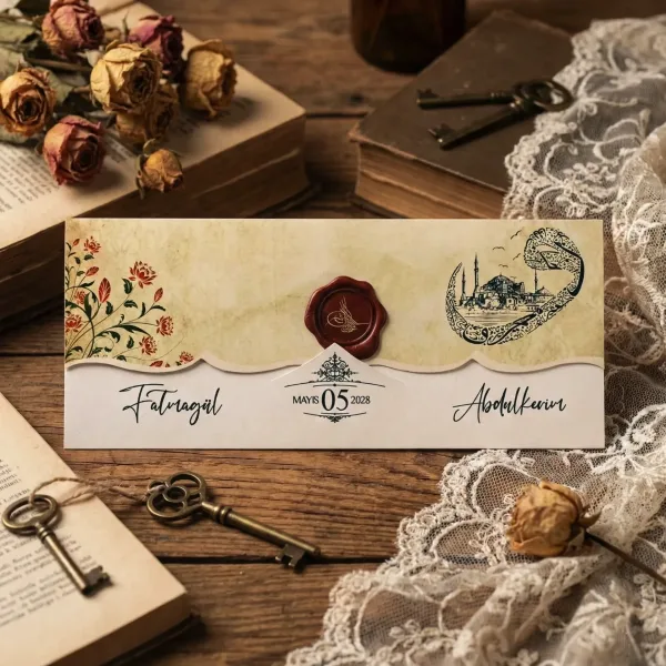 Söz, nikah, nişan ve düğün planlayan çiftler için özel olarak üretilmiş İstanbul Esintili Yatay Davetiye 55 806 koduna sahiptir. Krem zemin ve İstanbul esintili detaylar ile sade ve şık tasarıma sahip davetiyede 18,5 cm x 8,1 cm 190gr Amerikan Bristol kağıt kullanılmıştır. Ürün elinize açık şekilde ulaşacaktır. Kırım ve katlama izleri bellidir. Ürün elinize ulaştıktan sonra tarafınızdan yapılması gereken, kutuyu kırım ve katlama izlerinden katlayıp kelepçeleri yerine yerleştirmek olacaktır.