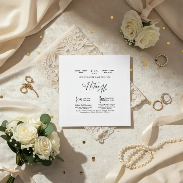 Söz, nikah, nişan ve düğün planlayan çiftler için özel olarak üretilmiş Kabartmalı Beyaz Sade Lüks Davetiye 55 552 koduna sahiptir. Beyaz zemin ve kabartma detayları ile sade ve şık tasarıma sahip davetiyede 16 cm x 16 cm 190gr 1. Hamur kağıt kullanılmıştır. Ürün elinize açık şekilde ulaşacaktır. Kırım ve katlama izleri bellidir. Ürün elinize ulaştıktan sonra tarafınızdan yapılması gereken, kutuyu kırım ve katlama izlerinden katlayıp kelepçeleri yerine yerleştirmek olacaktır.