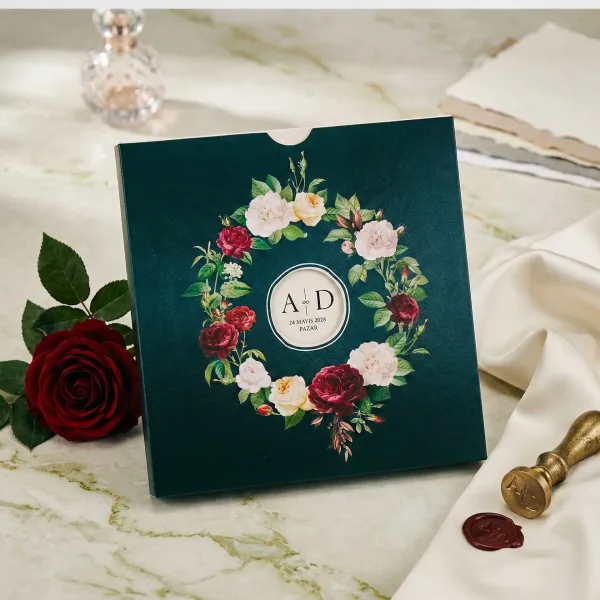 Söz, nikah, nişan ve düğün planlayan çiftler için özel olarak üretilmiş Koyu Zeminli Gül Motifli Davetiye 55 218 koduna sahiptir. Lacivert zemin ve gül motifleri ile sade ve şık tasarıma sahip davetiyede 15 cm x 15,2 cm 190gr. Amerikan Bristol kağıt kullanılmıştır. Ürün elinize açık şekilde ulaşacaktır. Kırım ve katlama izleri bellidir. Ürün elinize ulaştıktan sonra tarafınızdan yapılması gereken, kutuyu kırım ve katlama izlerinden katlayıp kelepçeleri yerine yerleştirmek olacaktır.