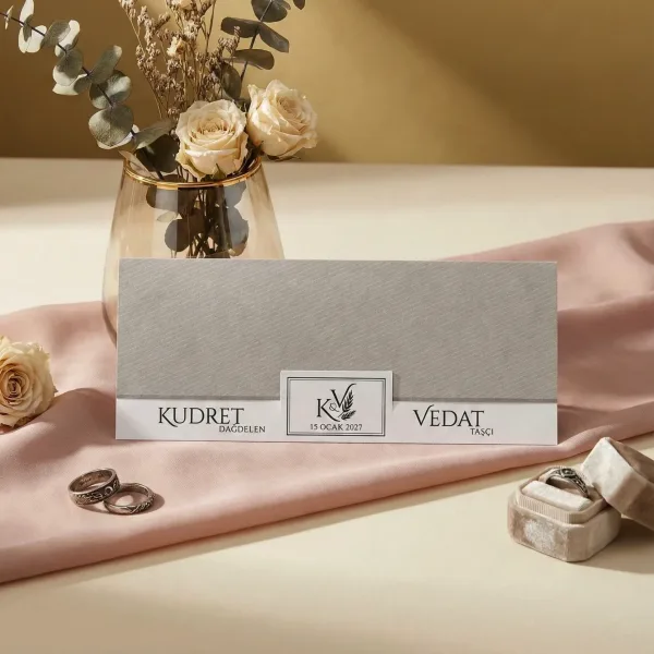 Söz, nikah, nişan ve düğün planlayan çiftler için özel olarak üretilmiş Modern Minimal Gri Davetiye 55 809 koduna sahiptir. Gri zemin ve minimal tasarım detayları ile sade ve şık tasarıma sahip davetiyede 18,6 cm x 8,1 cm 190gr 1. Hamur kağıt kullanılmıştır. Ürün elinize açık şekilde ulaşacaktır. Kırım ve katlama izleri bellidir. Ürün elinize ulaştıktan sonra tarafınızdan yapılması gereken, kutuyu kırım ve katlama izlerinden katlayıp kelepçeleri yerine yerleştirmek olacaktır.
