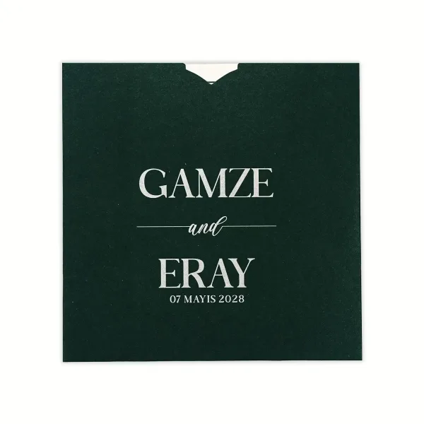 Söz, nikah, nişan ve düğün planlayan çiftler için özel olarak üretilmiş Yeşil Zeminli Gümüş Desenli Kare Davetiye 55 205 koduna sahiptir. Yeşil zemin ve gümüş desenler ile sade ve şık tasarıma sahip davetiyede 15 cm x 15 cm 160gr. 1. Hamur kağıt kullanılmıştır. Ürün elinize açık şekilde ulaşacaktır. Kırım ve katlama izleri bellidir. Ürün elinize ulaştıktan sonra tarafınızdan yapılması gereken, kutuyu kırım ve katlama izlerinden katlayıp kelepçeleri yerine yerleştirmek olacaktır.